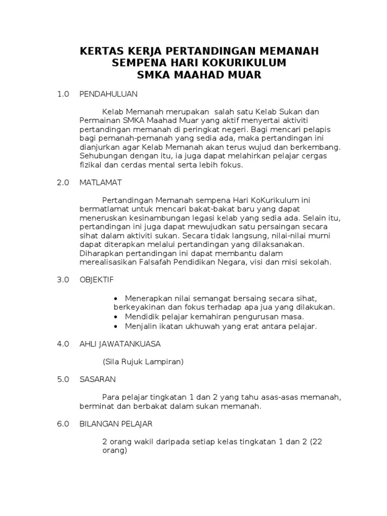 Contoh kertas kerja pertandingan futsal. KERTAS KERJA PERTANDINGAN BICARA BERIRAMA Minit Mesyuarat Panitia Pendidikan Seni Kali 1 Anggaran Perbelanjaan Tahunan 2012 124322544 Kertas Kerja. Contoh Kerja Kursus Sejarah.