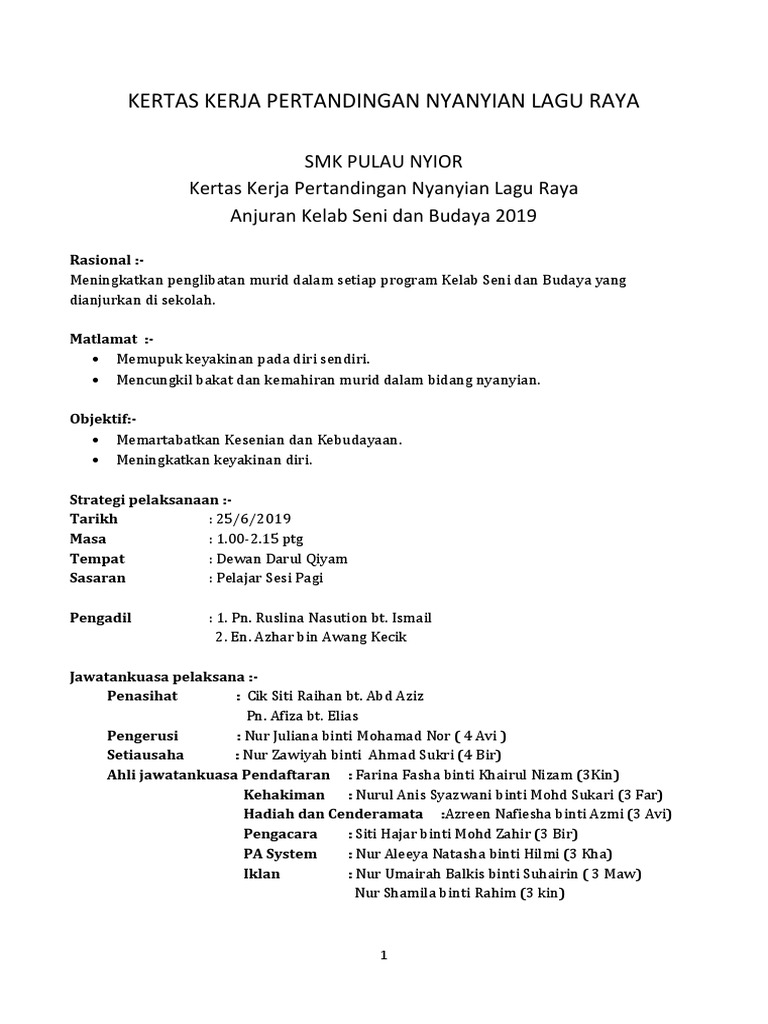 Kertas Kerja Pertandingan Nyanyian 2019 Pdf