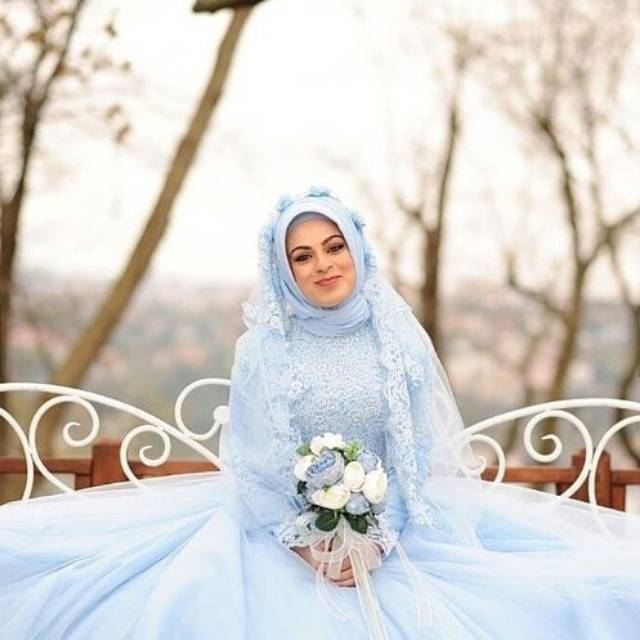Jual Gaun Pengantin Hijab Biru Muda Wedding Dress Bridal Baju Pengantin Muslimah Shopee Indonesia